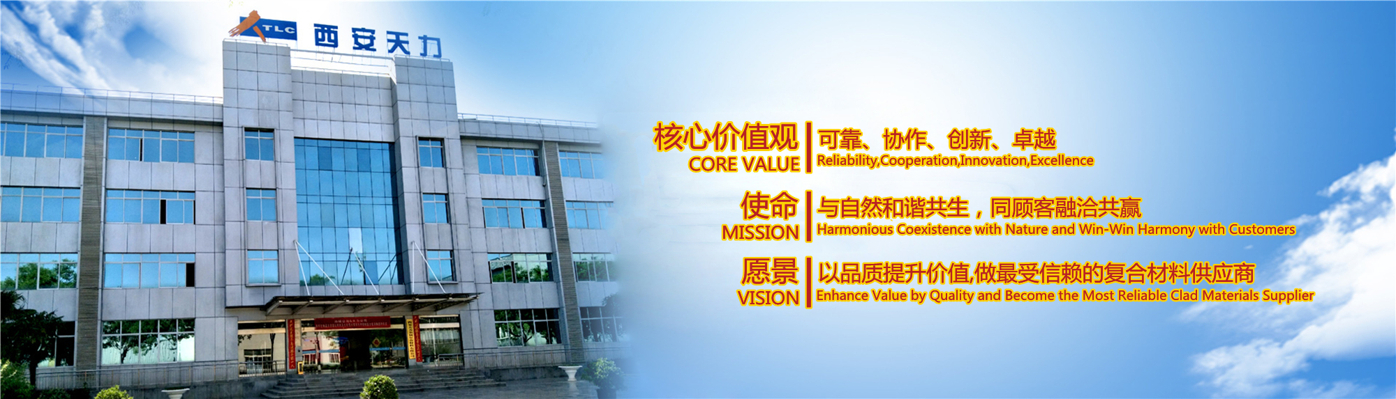 西安天力金屬復(fù)合材料股份有限公司是西北有色金屬研究院(集團(tuán))產(chǎn)業(yè)化上市公司“西部材料”控股的獨(dú)立法人公司,是專業(yè)從事層狀金屬復(fù)合材料研究及生產(chǎn)的高新技術(shù)企業(yè),成立于2003年12月25日,位于西安經(jīng)濟(jì)技術(shù)開發(fā)區(qū)涇渭工業(yè)園,注冊資本10895萬股,擁有生產(chǎn)廠房23000余平米,各類生產(chǎn)設(shè)備200余臺套及兩塊條件優(yōu)越的爆炸復(fù)合場地,形成年產(chǎn)25000噸層狀復(fù)合材料的生產(chǎn)加工能力……
